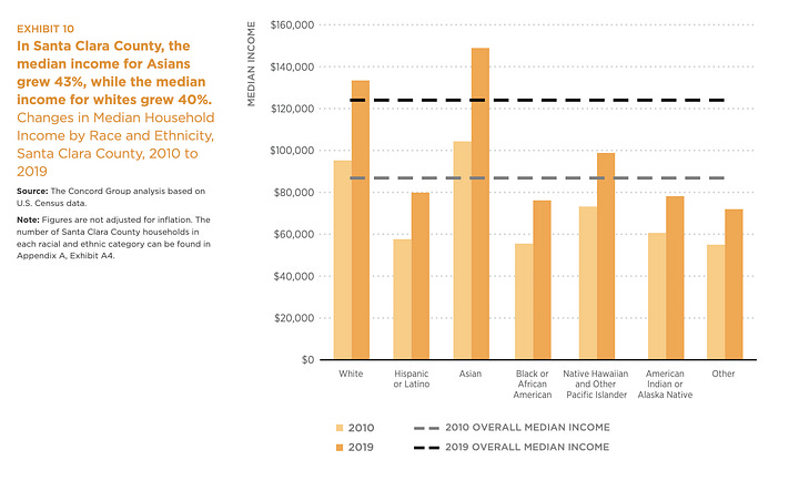 These are not numbers from a red state in the Deep South but San Francisco. The technology capital of the world, which has propelled the incomes of white and Asian households tremendously, and for which Latinos largely and Black people almost entirely have been completely left out. Without meeting the most basic literacy standards, Black and Latino high school graduates aren’t even qualified for the most basic office jobs. Computer science is totally out reach — the mathematics proficiency standards are in the single-digits for Black high school graduates.