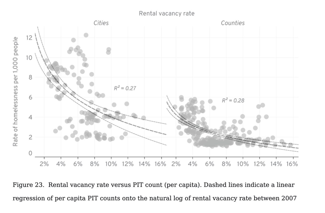 The author goes back and forth between dismissing the idea there’s a housing shortage based on the classic vacant units / homelessness equation and arguing more housing should be built but for the lowest incomes. TL;DR: most vacancies are simply short term vacancies between tenants, they’re by and large effectively occupied. Yes some minority of vacancies are wasteful pied-à-terre that should be taxed but it’s not enough to solve homelessness. Later on the author says: