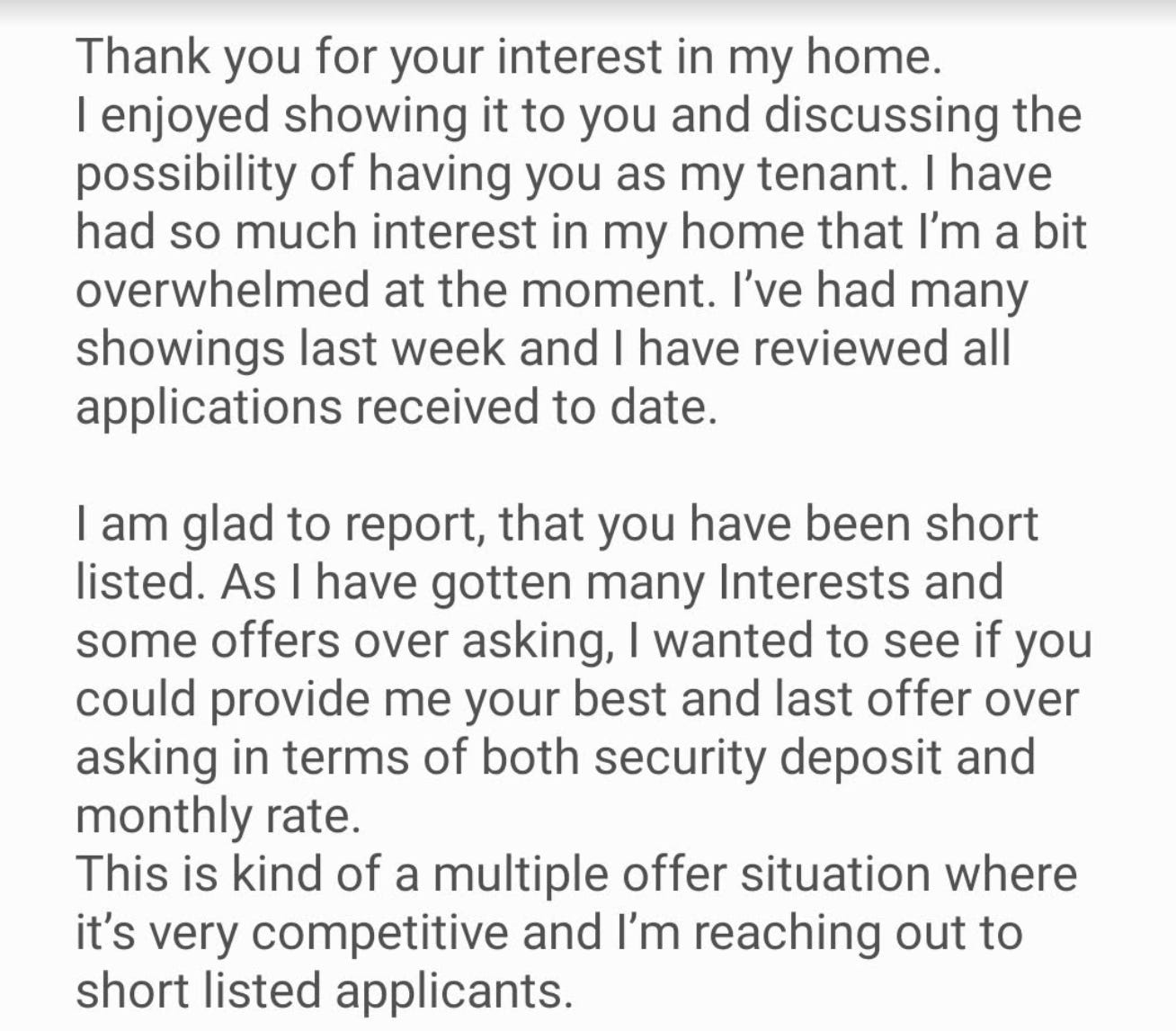 By then I had enough. I was so totally exhausted by this whole thing that in a fit of rage, aimed mostly at the morons I argue with on Twitter who claim the housing shortage isn’t real or whatever (yes, someone accused me of making up these texts), I posted an excerpt of the bidding text message. It went viral on Reddit and reporters quickly called me to ask about this crazy town called Santa Cruz.