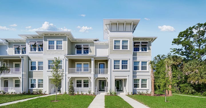 This is anecdotal but condos (or owner-occupied housing) tends to look much better than even contemporary design apartments. Most new multi-family homes are rentals and the buyers of apartments are not average people but corporate landlords. Very few prospective tenants looking for rental listings are paying an ounce of attention to the building’s exterior. (If you do, you’re a bit weird or snobbish.) A condo and single-family developer’s market is mostly average people looking to own a home, so they care deeply about the exterior. Some developers are going to invest more money into hiring architects to build their projects with homey features or go for the neo-classic look.